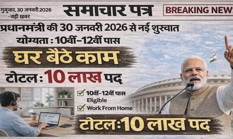 देशभर के युवाओं के लिए एक बड़ी news update सामने आ रही है। PM Work From Home Yojana 2026 को लेकर सोशल मीडिया और online platforms पर काफी चर्चा चल रही है। बताया जा रहा है कि 1 फरवरी 2026 से 10वीं–12वीं pass candidates के लिए घर बैठे काम (Work From Home) से जुड़ा एक नया option सामने आ सकता है। इस update को लेकर सबसे ज्यादा ध्यान without interview selection, easy apply process और monthly salary को लेकर देखा जा रहा है।